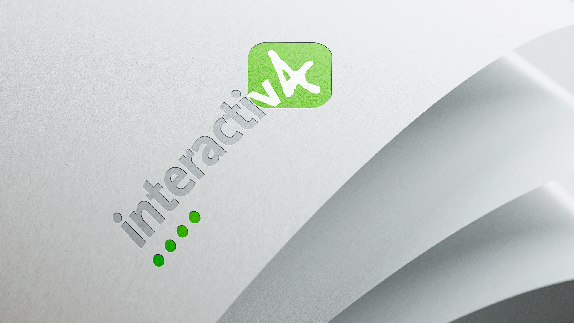 The iconic green symbol remains the core anchor, representing innovation, forward movement, and a strong digital foundation. Its geometric form continues to convey structure and precision, qualities deeply embedded in Interactiv4’s approach to ecommerce.