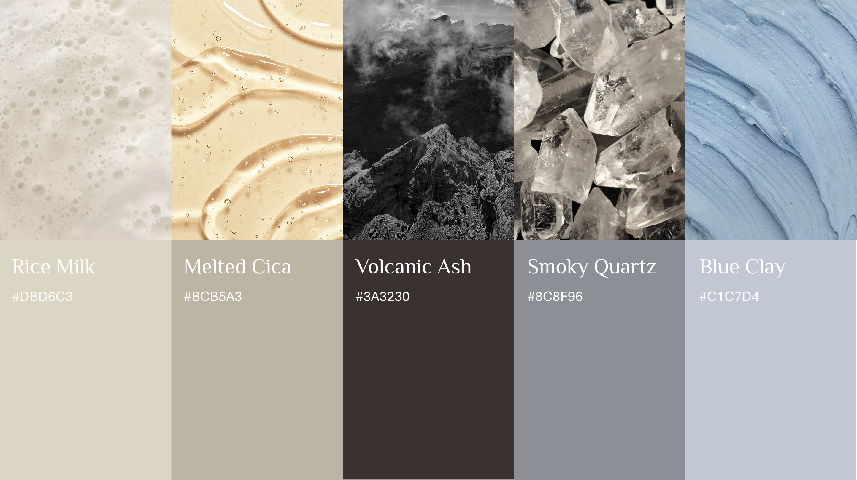 Rice Milk sets the foundation. A soft, creamy neutral that evokes purity and care – creating space for the product to breathe while establishing a clean, minimal base.