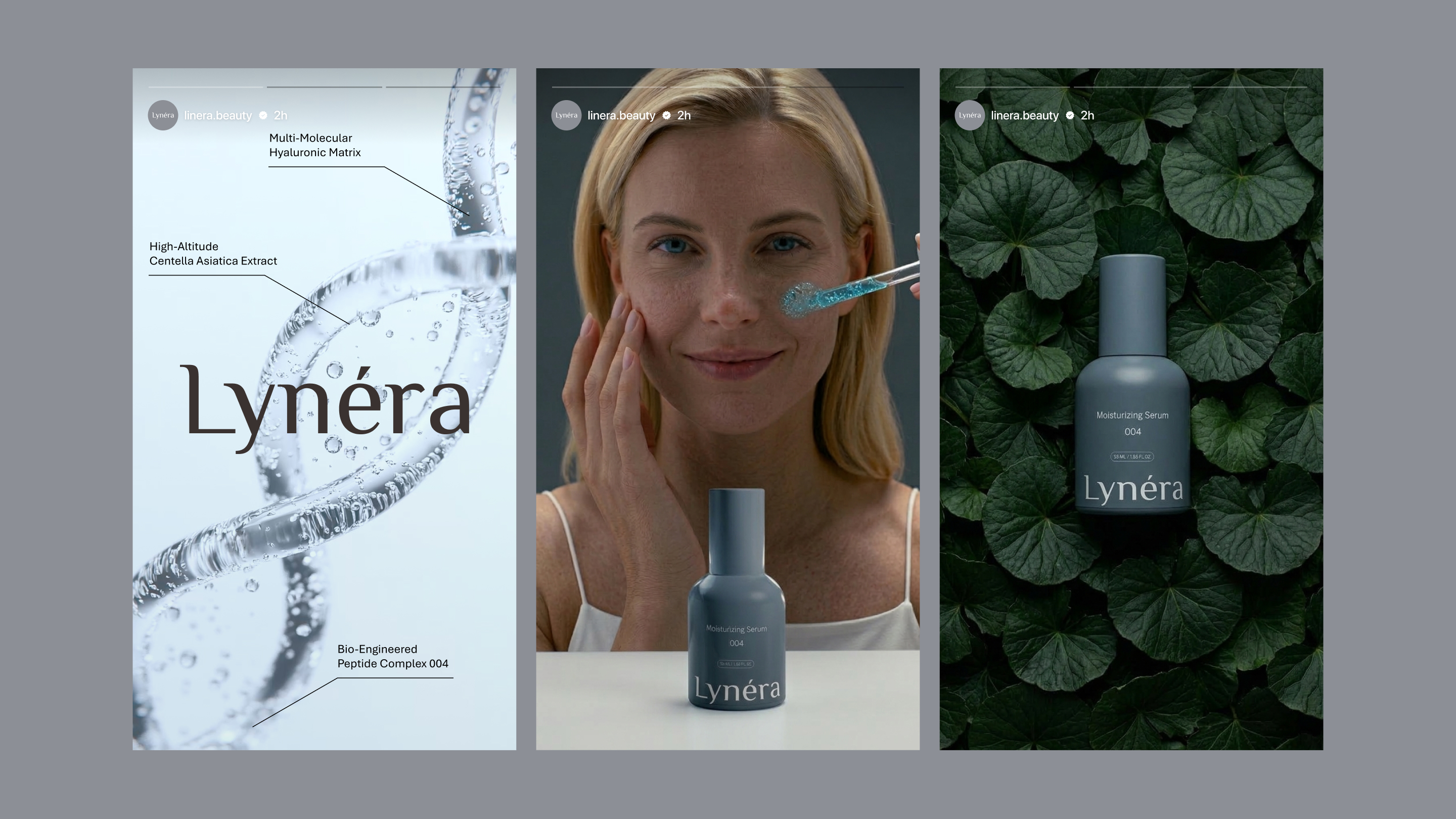 Lynéra is a premium skincare brand – minimal in form, powerful in performance, and built for visual-driven customers.